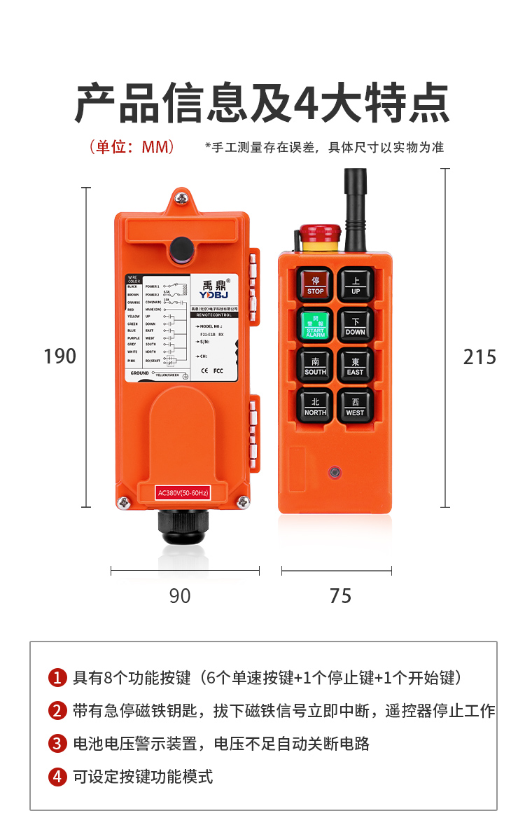 產(chǎn)品廣泛應(yīng)用于機械、建筑、冶金、汽車、化工、鐵路、施工等可實現(xiàn)遙控操作的設(shè)備及場所。